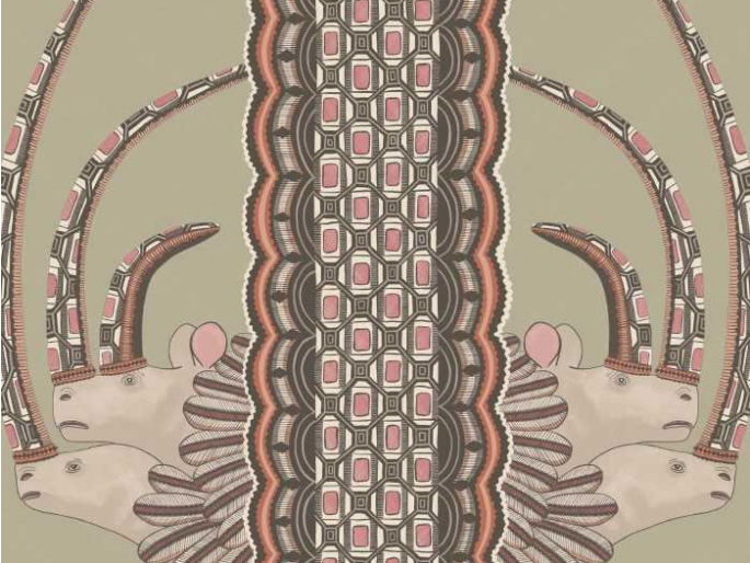 Dit behang combineert de pracht van Ardmore met de schoonheid van natuur en kunst. De kleurrijke potten en de sierlijke witte neushoorns zorgen voor een opvallend ontwerp dat jouw muren tot leven brengt met zijn verfijnde details en speelse energie.