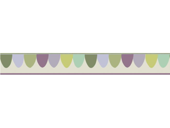 Met de Scaramouche rand haal je carnavalsslingers in huis. De vrolijke kleuren en diepe tinten passen bij elke kamer, van een lichte pastelkleur tot een gedurfde olijfgroene muur.